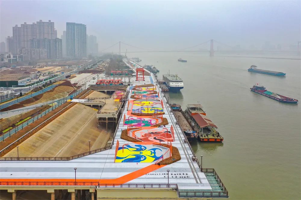 ? ? ? ?16個重點項目,繪就武漢百里長江生態(tài)廊道的壯美畫卷,楊泗港都市T臺是其中濃墨重彩的一筆。日前,長江中游地區(qū)最大的濱江城市平臺——楊泗港都市T臺主體工程完工。這個由碧水集團(tuán)精心打磨,利用停用港口打造的城市景觀將于春節(jié)前正式與廣大市民見面。