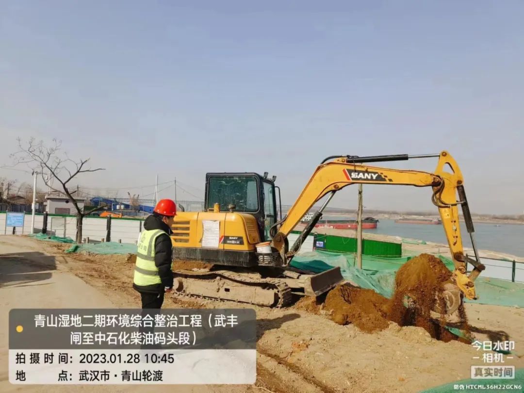 ? ? ? ?1月28號,碼頭旁機械正在進行平整施工,截至今日項目按計劃推進,正在開展綠化地形修整、植草邊溝放線開挖、排水管道施工、廣場路床修整等施工作業。目前本項目已完成生態區的防洪林采伐1546余棵,地表清理約7萬平米,綠化地形修整約2萬平米,護岸臺階基礎3900平米,雨水管道200m,園路路床及基層2600平米。